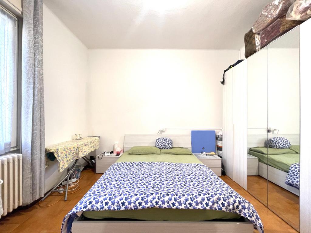Attraversandolo ci troviamo direttamente nella zona giorno finestrata. le geometrie pulite dell'appartamento, permettono di essere arredato a proprio piacimento. Dal soggiorno, a sinistra, una porta a soffietto separa il tinello (finestrato) mentre a fianco, troviamo la porta che ci conduce al bagno finestrato con doccia ed angolo lavanderia. Tornando nel soggiorno, a destra troviamo invece la grande camera matrimoniale.