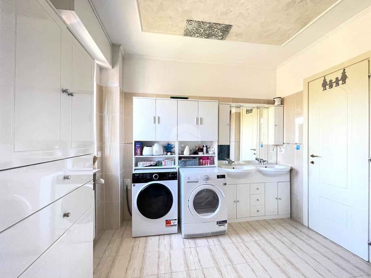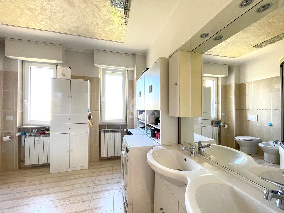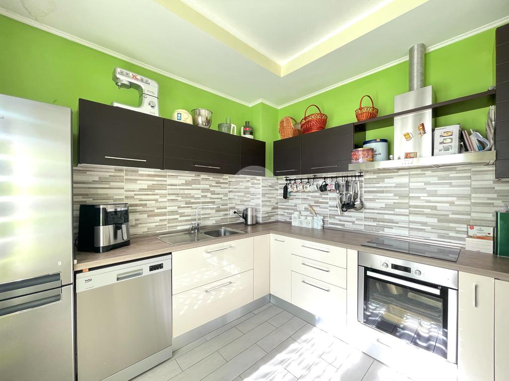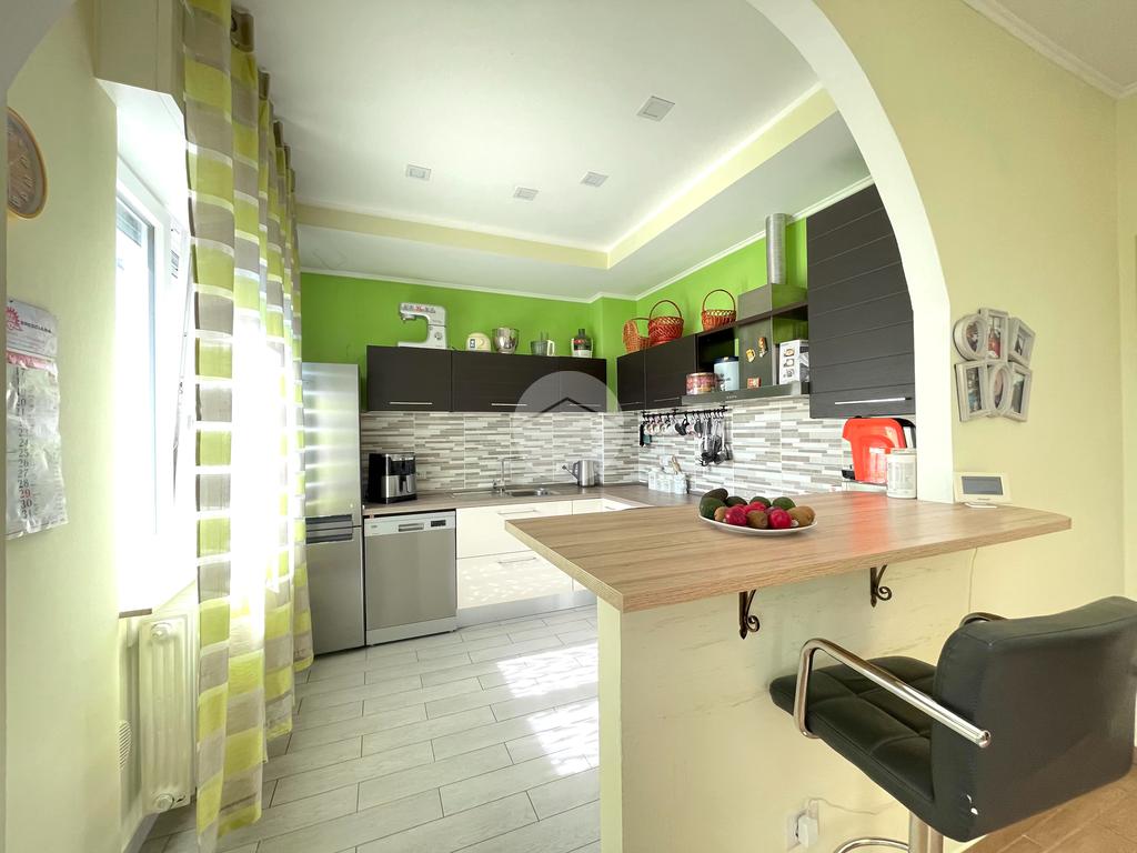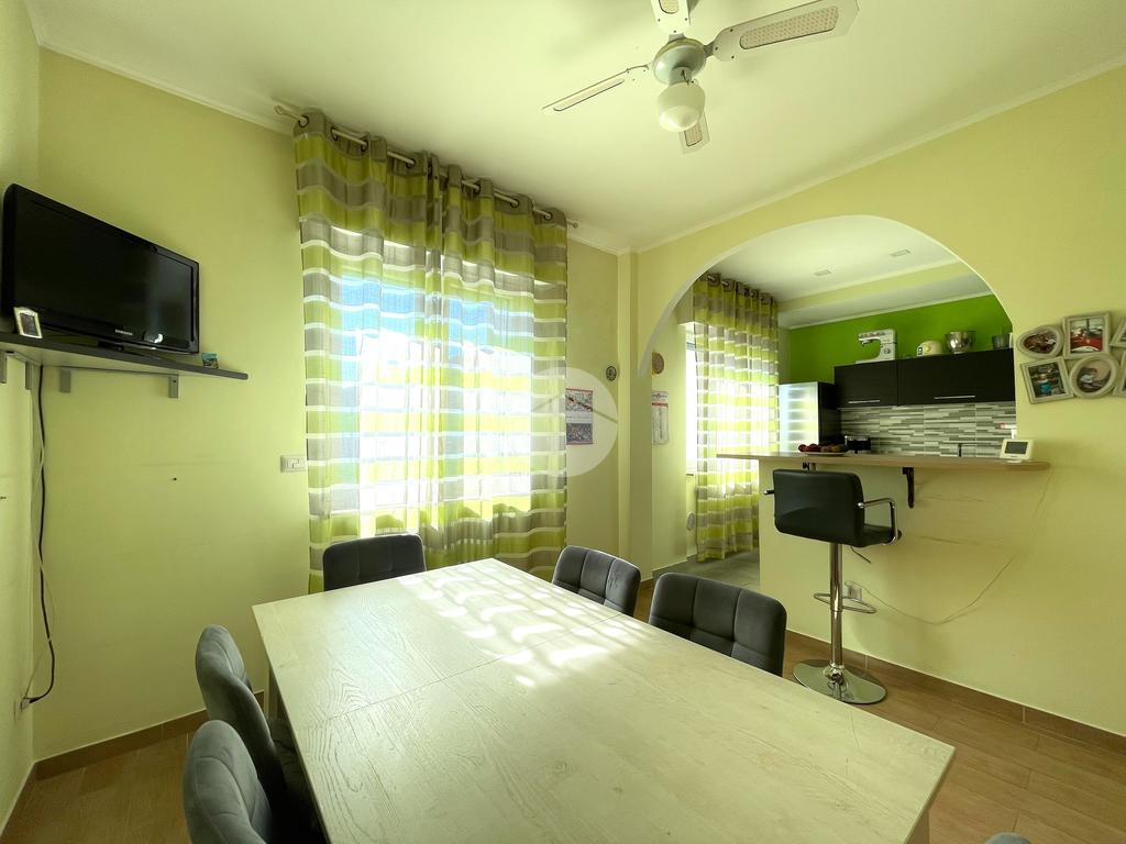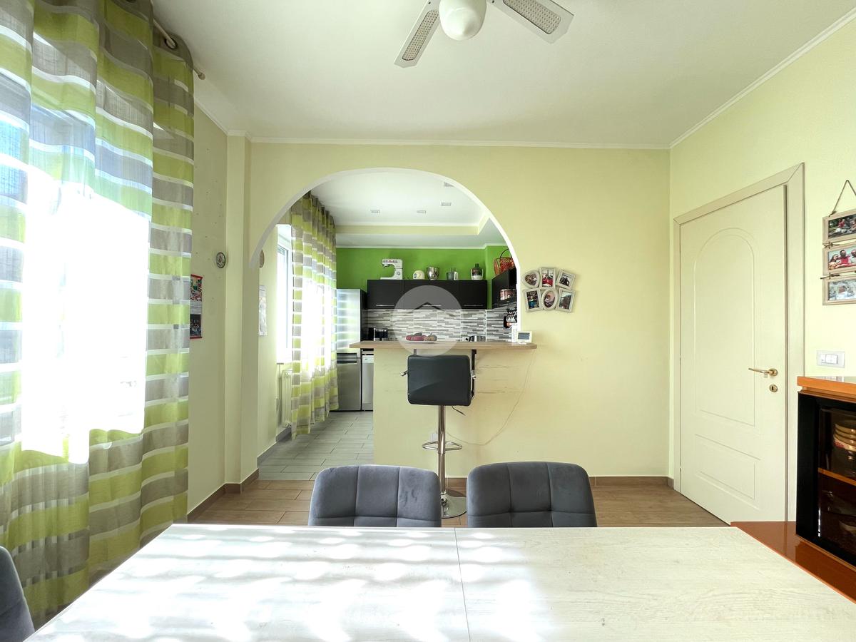 Attraversando il cortile d'ingresso, entriamo nel vano scala condominiale e saliamo all'ultimo piano. Tramite blindato accediamo al disimpegno della zona giorno, l'ambiente e attrezzabile. A sinistra troviamo un grande e luminoso soggiorno con portafinestra per uscire sul primo balcone. A destra invece troviamo la sala da pranzo, collegata internamente con la grande cucina abitabile. Sempre dal primo disimpegno tramite porta entriamo nel secondo disimpegno, quello della zona notte.