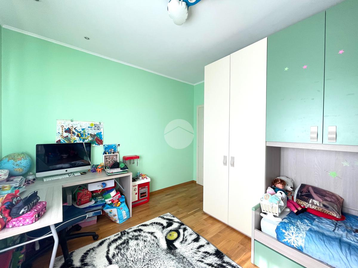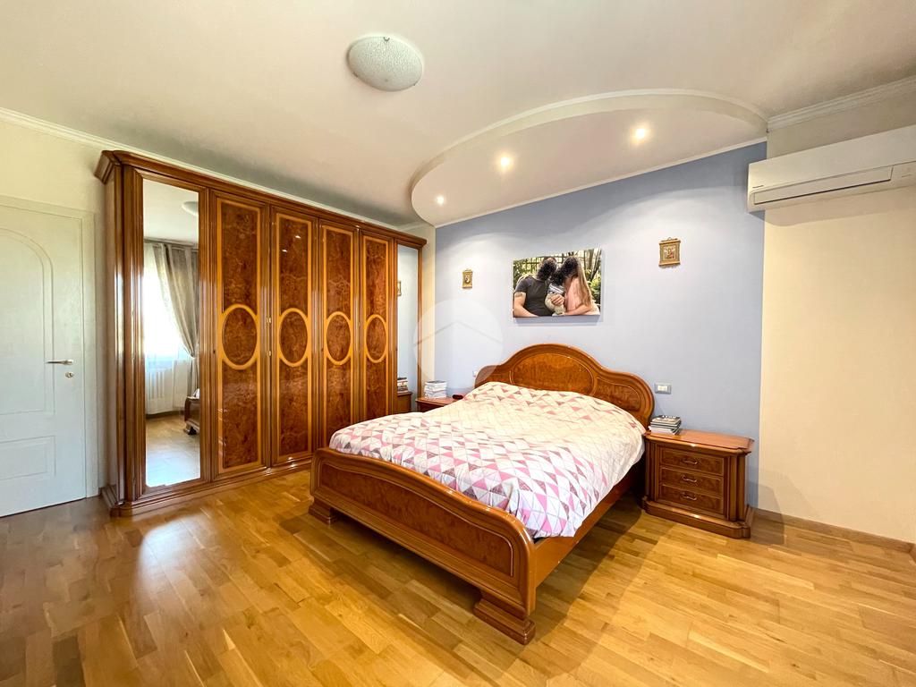 A sinistra abbiamo la camera padronale, seguono le altre due camere matrimoniali, una delle quali con portafinestra per accedere al secondo balcone con vista panoramica sulle montagne. Un elegante e grande bagno con ampia vasca/doccia e zona lavanderia serve l'appartamento.
