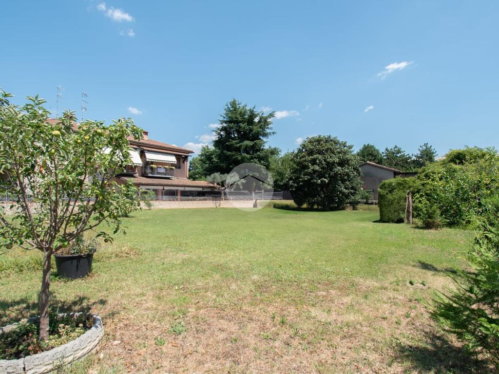 Completa la soluzione un doppio garage in larghezza e un'ampia zona verde con piccolo magazzino prospiciente alla casa.
